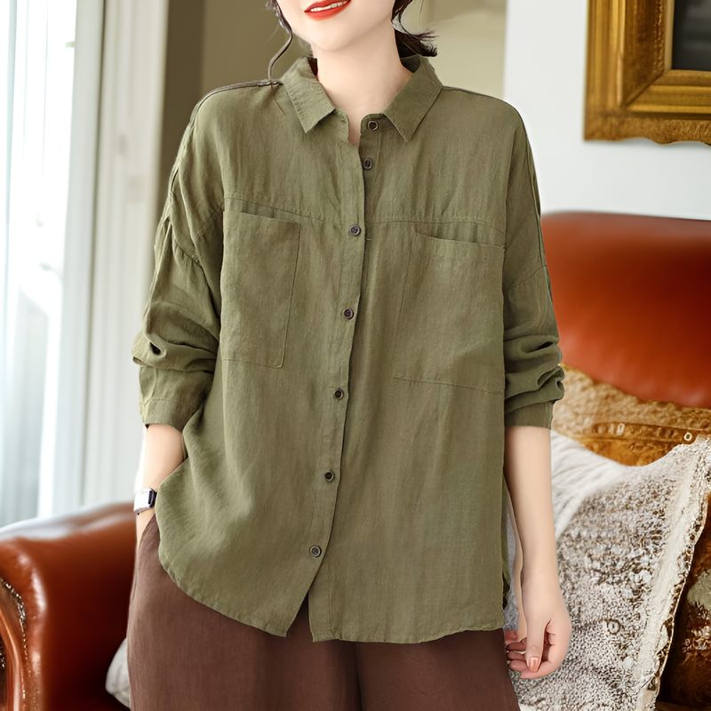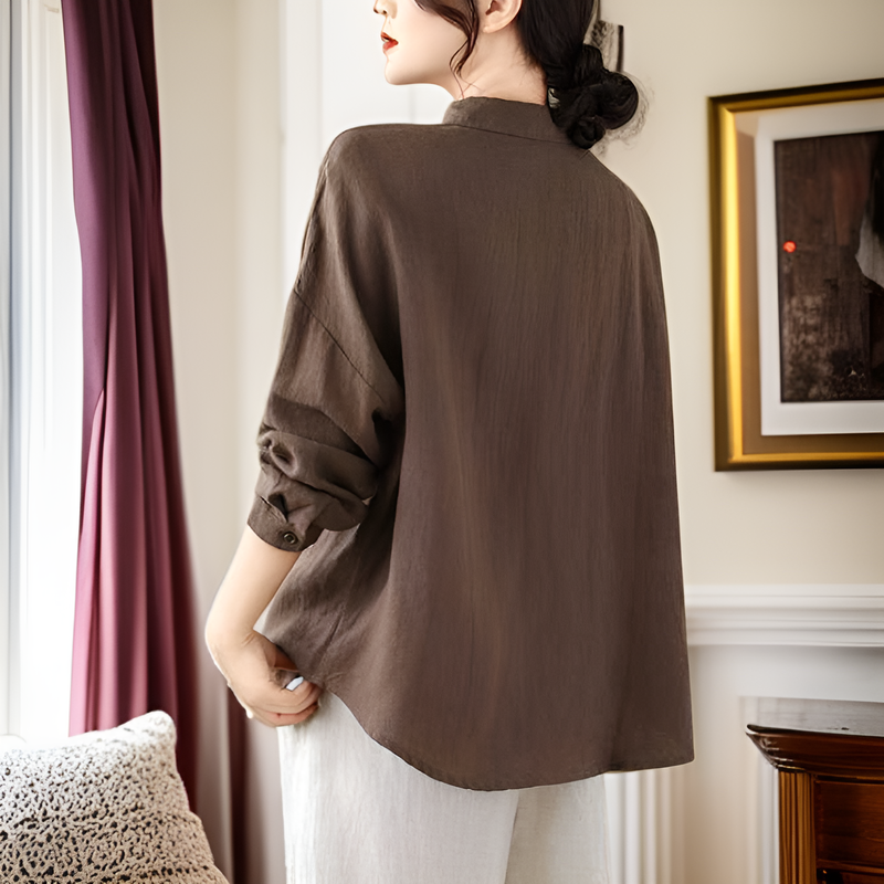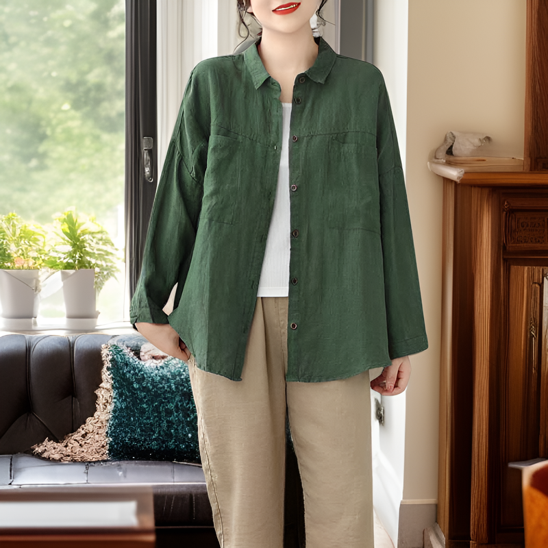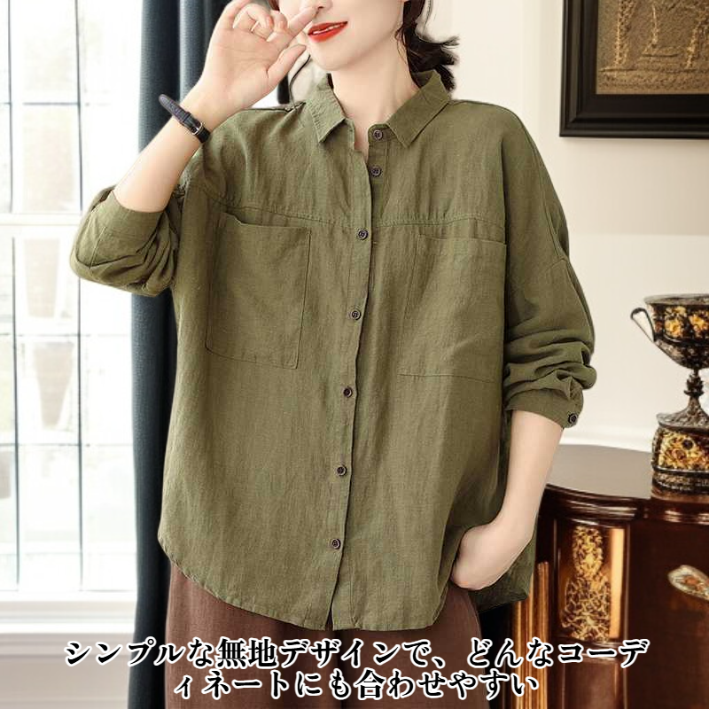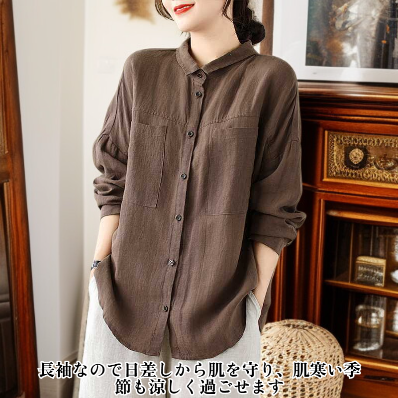 ゆったり大きいサイズ・綿麻長袖カーディガン・無地・文芸シャツ