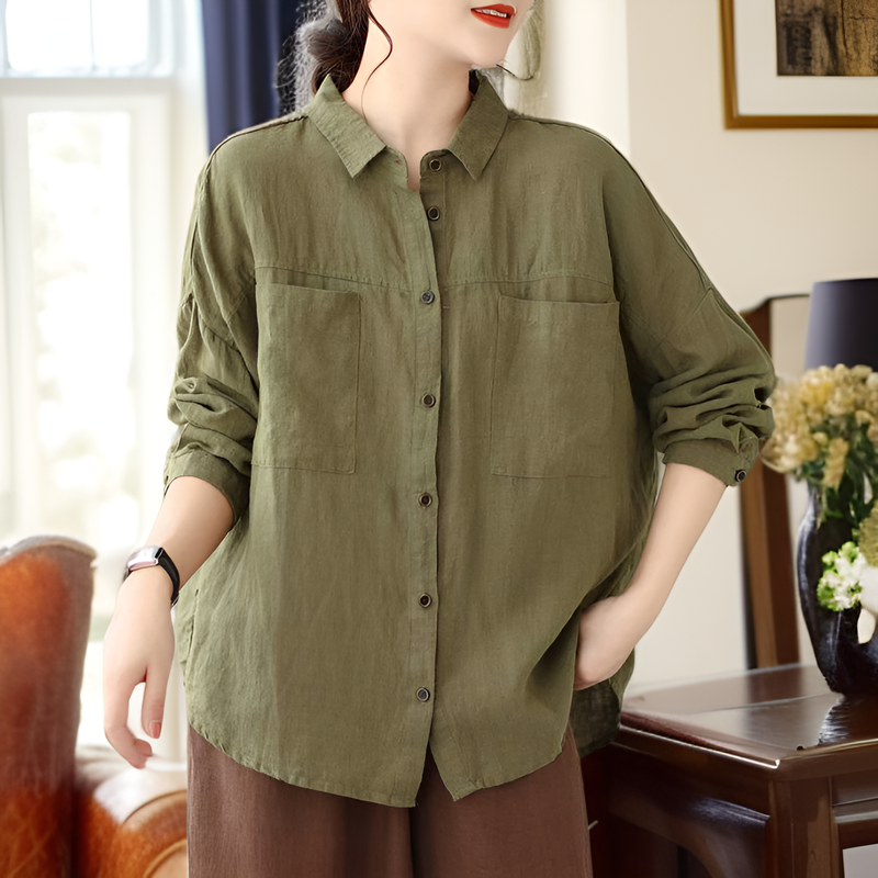 ● ゆったりとした大きめサイズで、体型を気にせずリラックスして着用できる快適な綿麻長袖カーディガンです。
