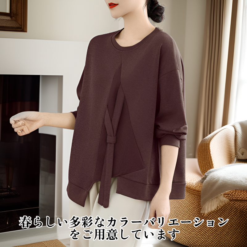 韓国風ゆったり大きいサイズ切り替えスウェット 春新作 レディース